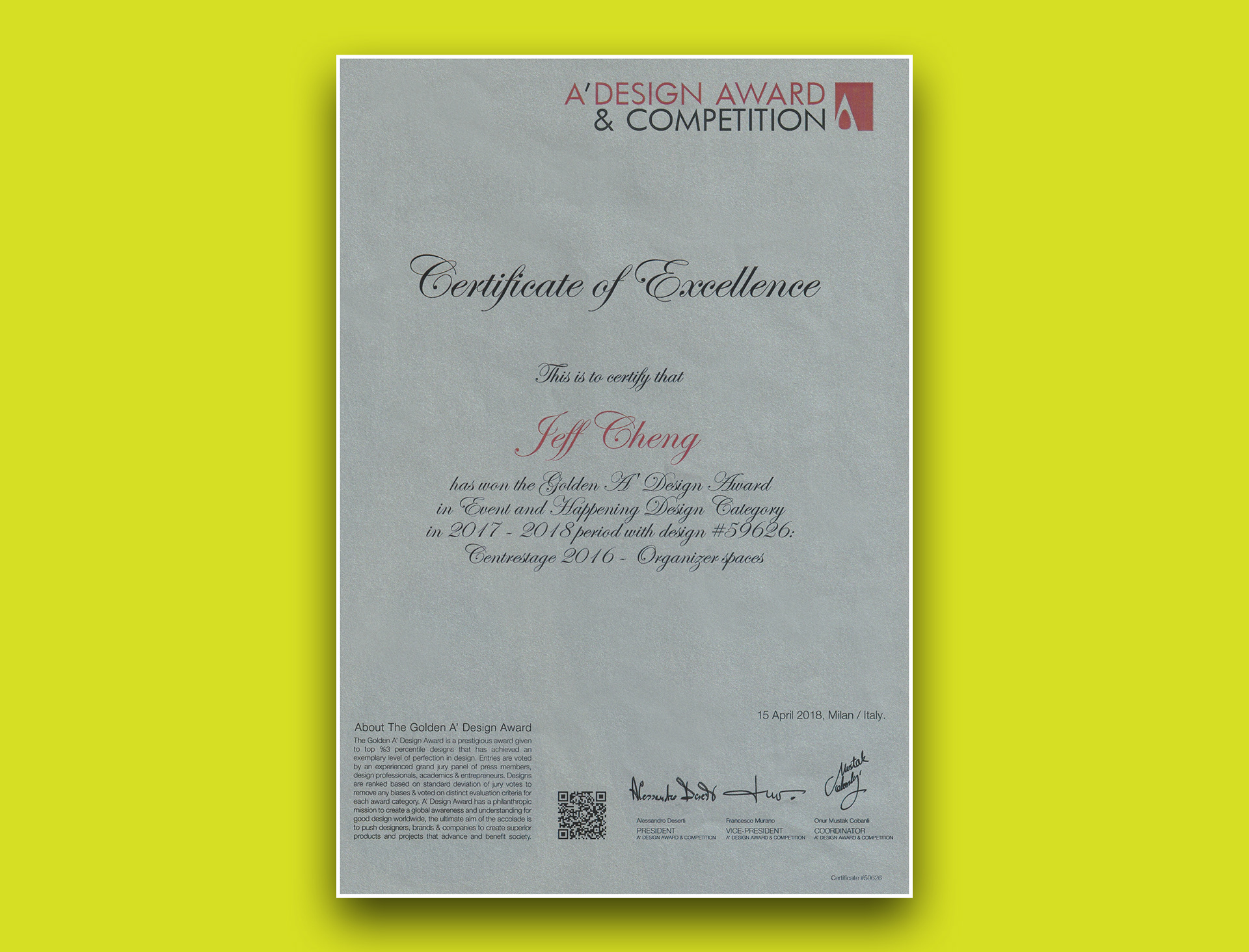 CentreStage 2016|Gold Winner|A' Design Award & Competition in Milan (2018)